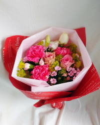 オーソドックスな長めの花束や、かわいらしい丸いブーケタイプがあります。